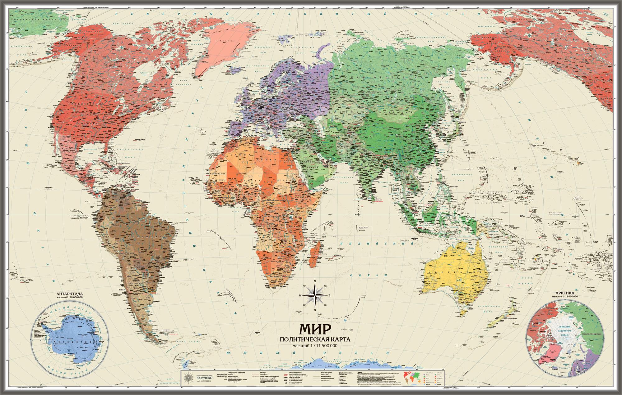 Политическая карта мира отлично смотрится как в офисе, так и дома и вписывается в любой интерьер.