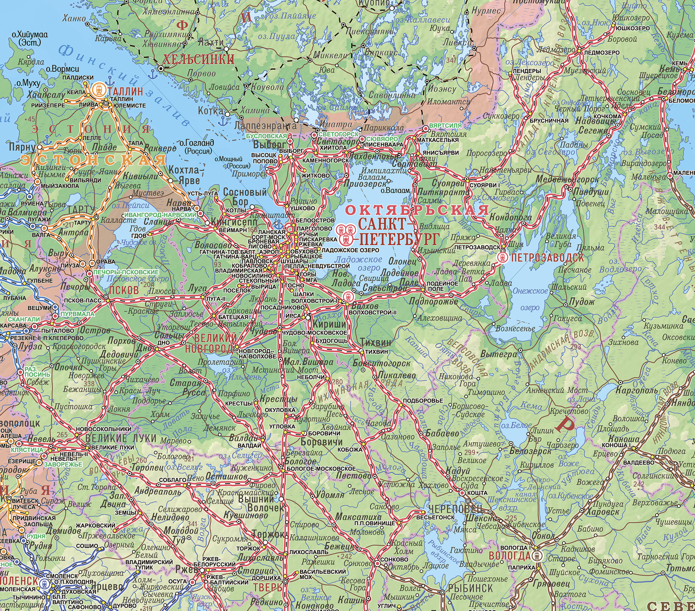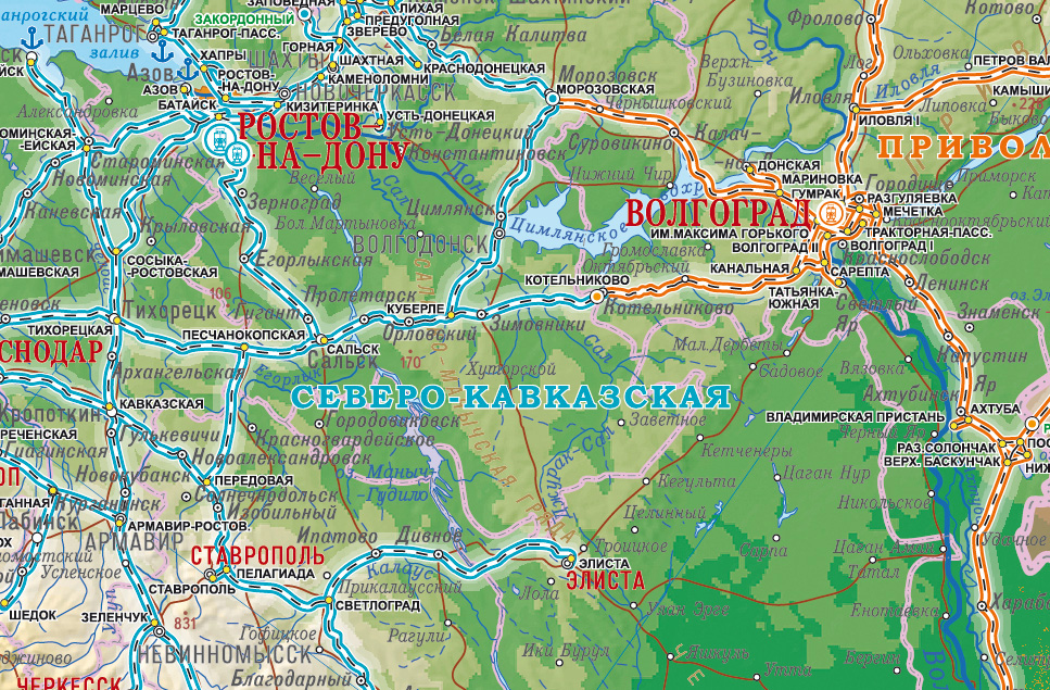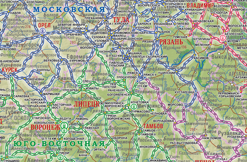 Новая рельефная карта Железных дорог России.